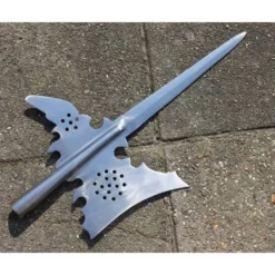 Productdetails: Lengte: 214.6 cm / Bladmaat: 52 cm / Gewicht: 1483g / Materiaal: 1055 koolstofstaal hardheid 53 HRC / Snede: Scherp / Inclusief schacht: Ja / Gebaseerd op een historisch origineel: Ja /