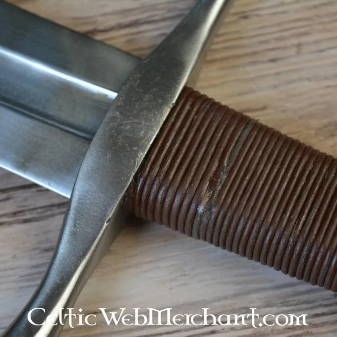 De kling van dit zwaard kan voor een meerprijs van €70,00 bot (2,5-3 mm) worden gemaakt. Let op: hoewel de kling hierdoor een battle-ready dikte krijgt, vervalt met het gebruik van de afbotservice de garantie en het retourrecht. Wenst u gebruik te maken van deze service, neem dan contact met ons op of geef dit aan in de laatste stap bij afrekenen van uw winkelwagentje. Houd u rekening met een levertijd van ongeveer 2 weken extra.