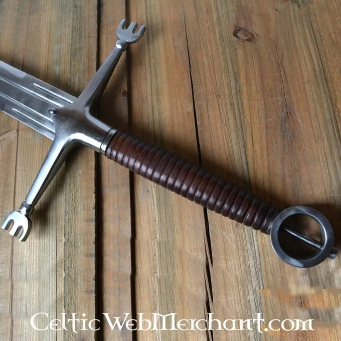 Dit zwaard is een replica van een 15de eeuws Iers origineel. Hij werd gebruikt door de Schots-Ierse Galloglass (Galloglaich). Galloglaich waren huursoldaten van Schots-Ierse afkomst die vanaf de 13de tot 16de eeuw in de velen Schotse en Ierse oorlogen, tegen de Engelsen en tegen elkaar vochten. Het origineel van dit zwaard kan worden gezien in diverse 15de eeuwse Ierse tekeningen en prenten. Verschillende vergelijkbare originelen maken tegenwoordig deel uit van de collectie van het National Museum of Ireland in Dublin. Dit zwaard heeft een Ierse ringpommel en heeft een opvallend brede kling. Hij werd primair gebruikt om mee te houwen.