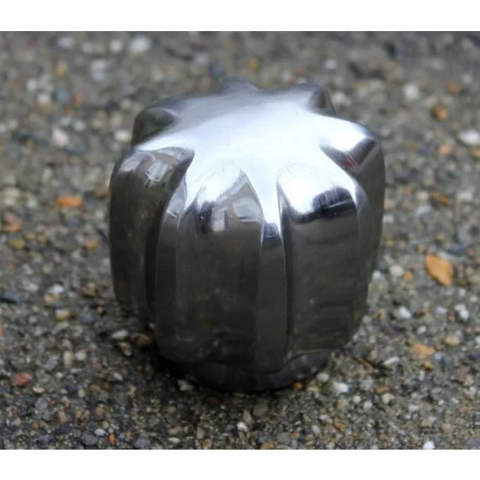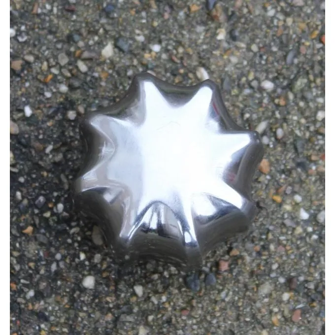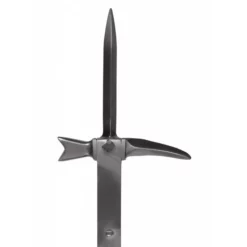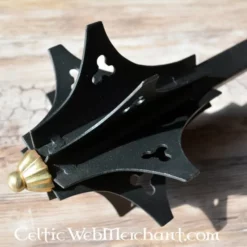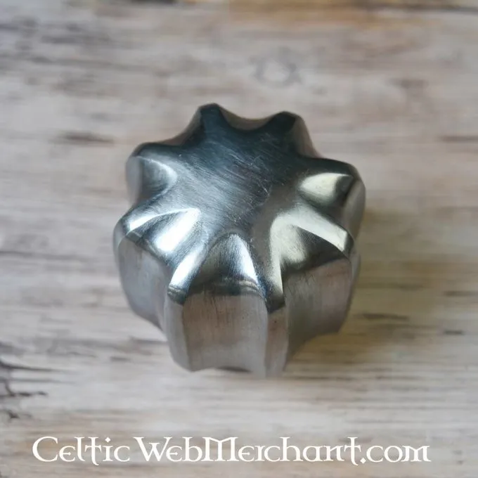 Dit is een replica van een middeleeuwse knotskop, gemaakt van gegoten staal. Hij is ongeveer 5 tot 6 mm dik, 5-6 cm hoog en heeft een oog van circa 29 mm. Gewicht 0,4 kg.