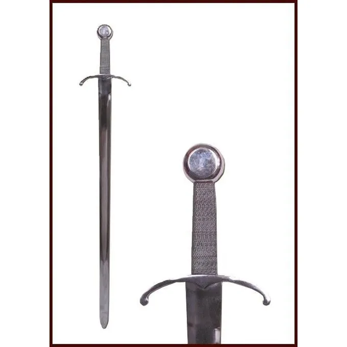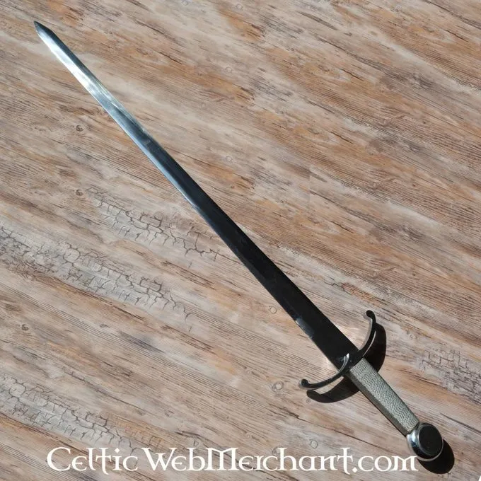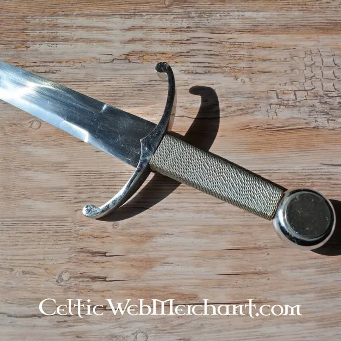 Middeleeuws eenhandig zwaard met een gebogen pareerstang. Het zwaard is uit een stuk staal gesmeden voor extra stevigheid.