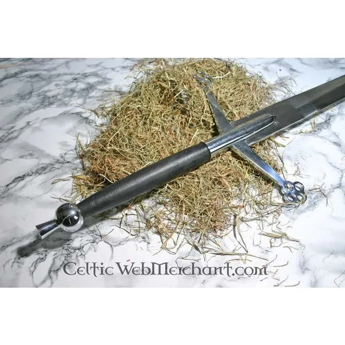 Productdetails: Klinglengte: 105 cm / Staaltype: EN45 verenstaal hardheid 48 HRC / Snede: Semi-scherp / Tangconstructie: Volledige tangconstructie / Pommel: Geschroefd / Gripwikkeling: Hout, leer / Gebaseerd op historisch origineel: Ja /