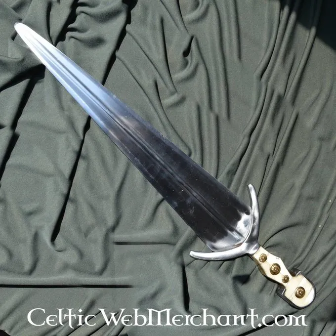 Productdetails: Lengte: 73 cm / Klinglengte: 55 cm / Griplengte: 18 cm / Klingbreedte bij pareerstang: 10 cm / Gewicht: 1600 gram / Staaltype: EN45 verenstaal hardheid 48 HRC. / Snede: Bot 3 mm (battle-ready) / Tangconstructie: Volledige tangconstructie /