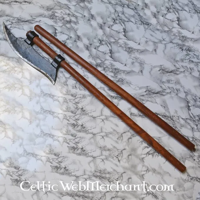 Deze hellebaard heeft veel weg van de later ontworpen Lochaber axe, die in alle christelijke landen maar met name in Schotland gebruikt werd. Beschrijvingen vertellen dat zowel het paard als de man door één slag van een hellebaard doorkliefd konden worden. Geoefende infanteristen konden hun hellebaard met een slag door het harnas heen laten gaan.