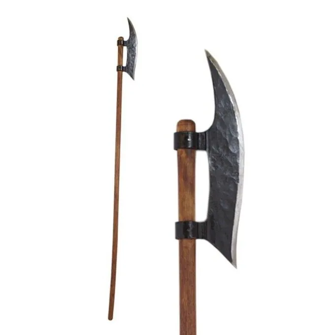 Productdetails: Lengte: 180 cm / Bladmaat: 41×13 cm / Materiaal: EN45 Verenstaal / Snede: Semi-scherp / Inclusief schacht: Ja / Gebaseerd op een historisch origineel: Ja /