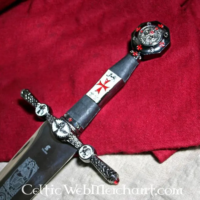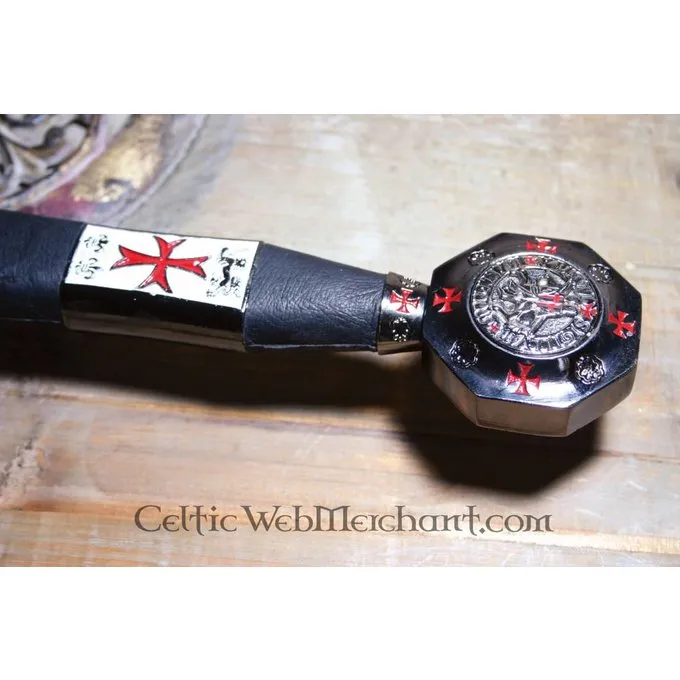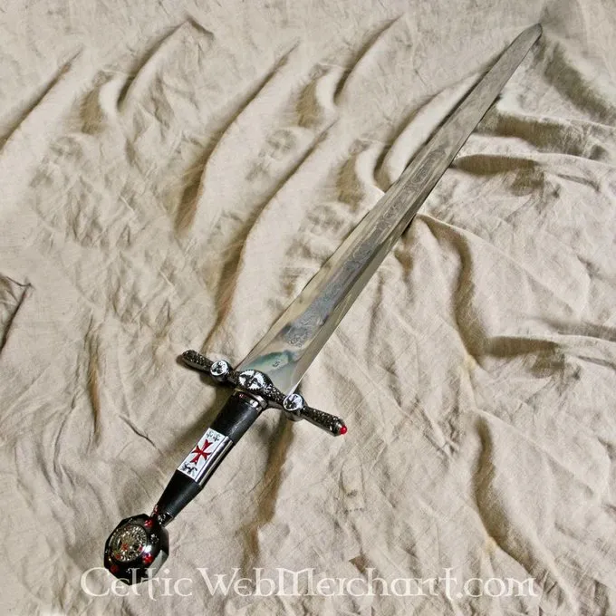 Dit zwaard is tot in de details gedecoreerd met tekens van de Tempel. Hij heeft een gepolijste kling die is gegraveerd en de pommel is gemaakt met het zegel van de tempeliers. Het zwaard is een absolute aanwinst voor iedere Tempelier en verzamelaar. Hij is gemaakt van prachtig Toledo staal en is 105 cm lang.