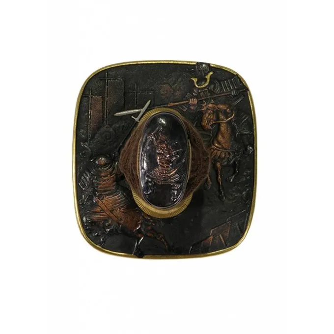 Deze volledig handgemaakte wakizashi heeft een kling gemaakt van gevouwen K120C staal. De saya is diepgelakt en ingelegd met messingen afbeeldingen van sakura (bloesem). De grip is omwikkeld met een hoge kwaliteit same (roggenhuid) en traditioneel geweven Japans katoen. De tsuba is gemaakt van gebronsd ijzer. Op de tsuba is met goud en zilver een strijdtafereel geschilderd.