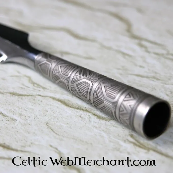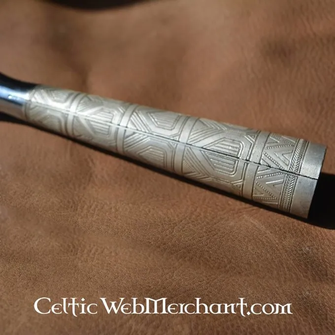 Productdetails: Lengte: 41.3 cm / Bladmaat: 24.8 cm / Ringdiameter: 2.5 cm / Gewicht: 340 g / Materiaal: En45 verenstaal hardheid 48-50 HRC. / Snede: Scherp / Inclusief schacht: Nee / Gebaseerd op een historisch origineel: Ja /
