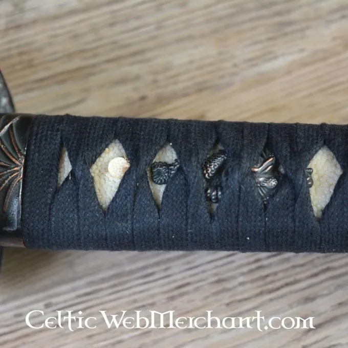 Deze katana heeft een lange tangconstructie (nakago) die in de grip is gefixeerd met behulp van twee bamboepinnen (mekugi). Het heeft ook een zwarte hoogglans gelakte schede (saya) in de Kuroro stijl gemaakt van hout. De katana wordt geleverd inclusief een stoffen beschermhoes en een mooie verzameldoos.