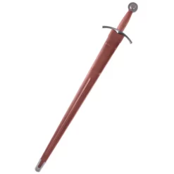Materiaal: 5160 koolstofstaal, leren schede / Totale lengte: 97 cm / Klinglengte: 81 cm / Lengte grip: 11 cm / Gewicht: 1330 g. / Kling: scherp / Pommel: peened / Gebaseerd op een historisch origineel