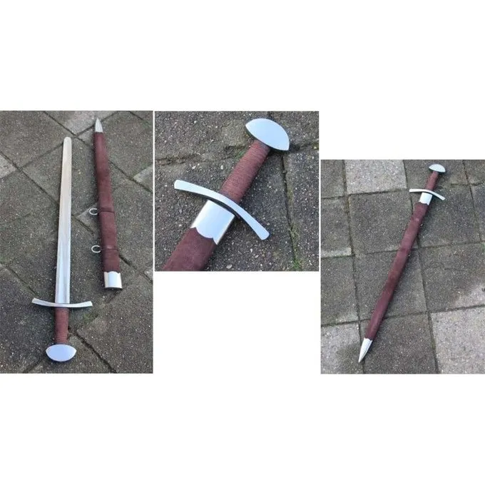Productdetails: Lengte: 92 cm / Klinglengte: 75 cm / Breedte pareerstang: 18 cm / Gewicht: 1350 gram / Staaltype: EN45 koolstofstaal 48 HRC. / Snede: Bot 3 mm (battle-ready) / Tangconstructie: Volledige tangconstructie / Pommel: Geschroefd / Gripwikkeling