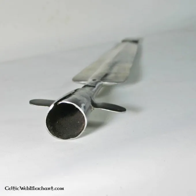 Deze speerpunt is bot en heeft een veiligheidsdop voor re-enactmentgevechten. Hij is 38,5 cm lag, met een kop van 28 cm. De binnendiameter van de ring is 30-32 mm.