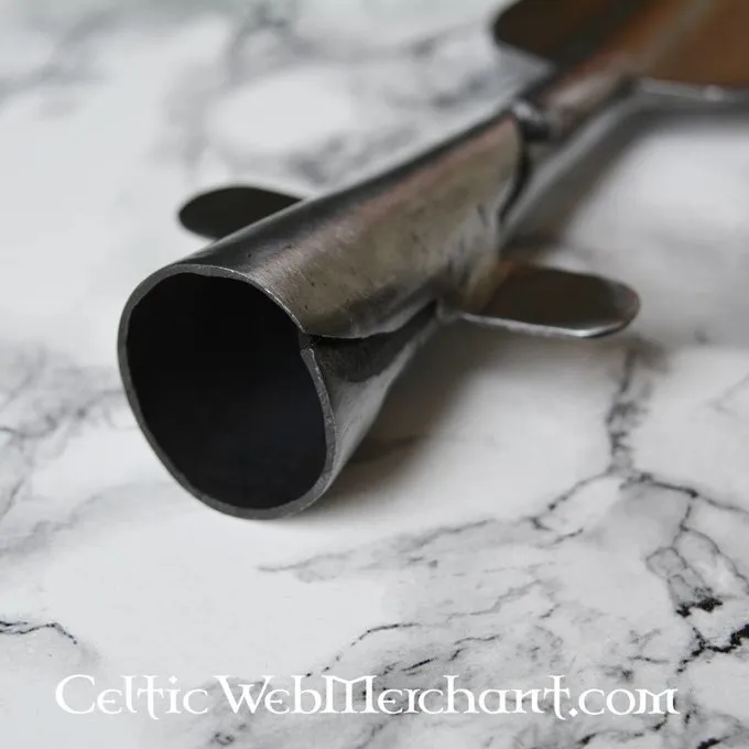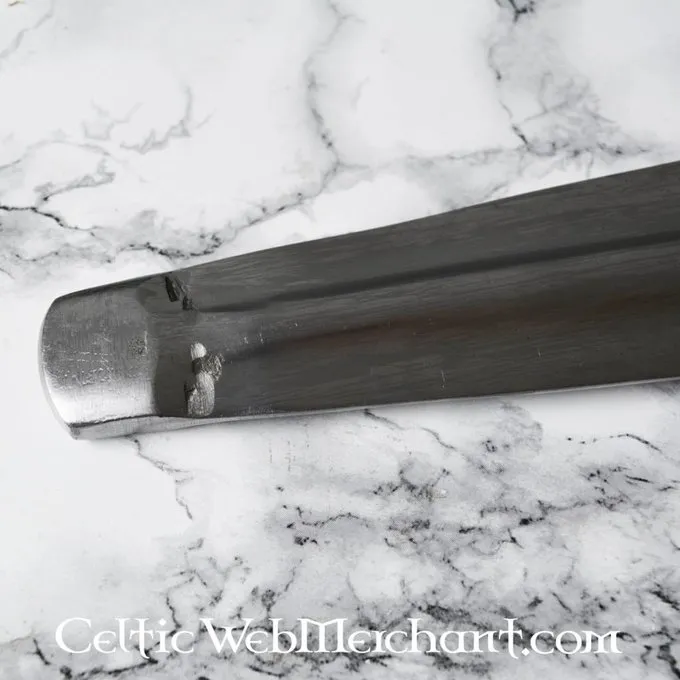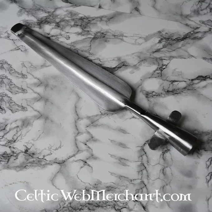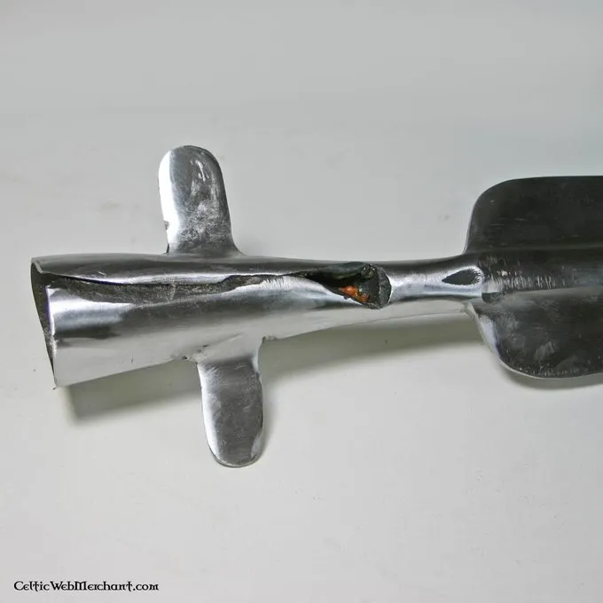 Productdetails: Lengte: 38.5 cm / Bladmaat: 28 cm / Ringdiameter: 3.2 cm / Materiaal: En45 verenstaal hardheid 48-50 HRC. / Snede: Bot (battle-ready) / Veiligheidsdop: Ja / Inclusief schacht: Nee / Gebaseerd op een historisch origineel: Ja /