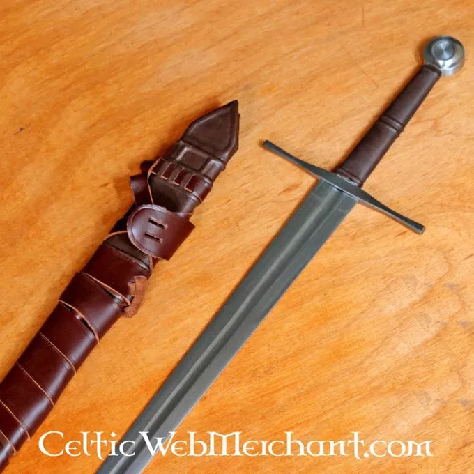 Deze anderhalfhander heeft een houten met bruin leer omwikkelde schede met leren riem en een bruine leren grip. De snede is 3 mm dik dus het zwaard is geschikt voor re-enactment battles en HEMA. Daarnaast is de kling getemperd en vervaardigd van EN42J verenstaal. Hij heeft een kern met een staalhardheid van 45 HRC en de snede heeft een hardheid van 50 HRC. Door de twee verschillende hardheden is het zwaard flexibel en minder bros dan vergelijkbare modellen. Dit zwaard is een combinatie van uitstekend vakmanschap en jarenlange HEMA ervaring.