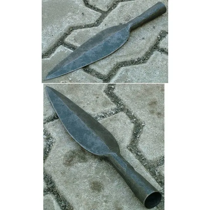 De speerpunt is handgemaakt van ijzer. Hij is gemaakt van een hoge kwaliteit ijzer en is geschikt voor intensief gebruik. Hij is 25,4 cm lang en 3.8 cm breed. Hij heeft een schachtring met een diameter van 2,6 cm.
