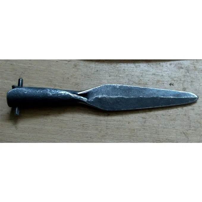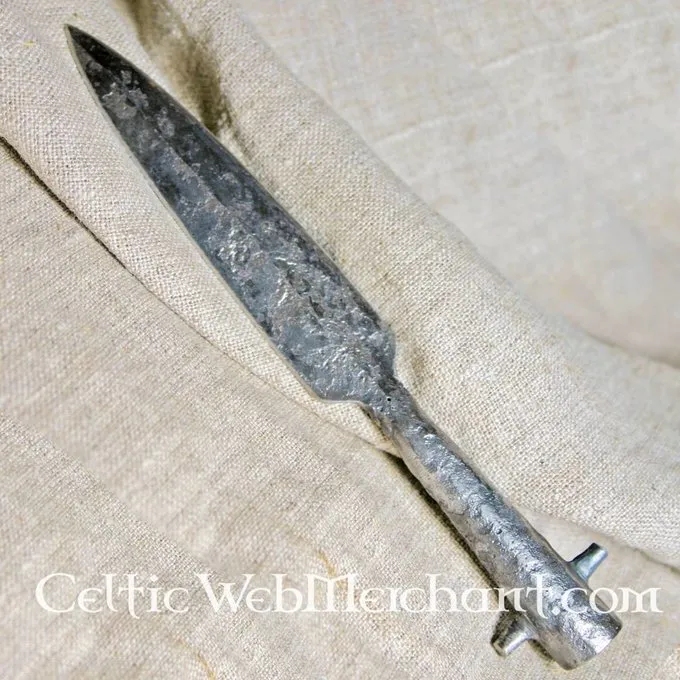 Productdetails: Bladmaat: 14.5 x 9 cm / Ringdiameter: 0.5 cm / Gewicht: 85 g / Materiaal: Verenstaal (DIN 54SiCr6) 50 HRC / Snede: Bot 3 mm (battle-ready)/semi-scherp/scherp / Inclusief schacht: Nee / Gebaseerd op een historisch origineel: Ja /